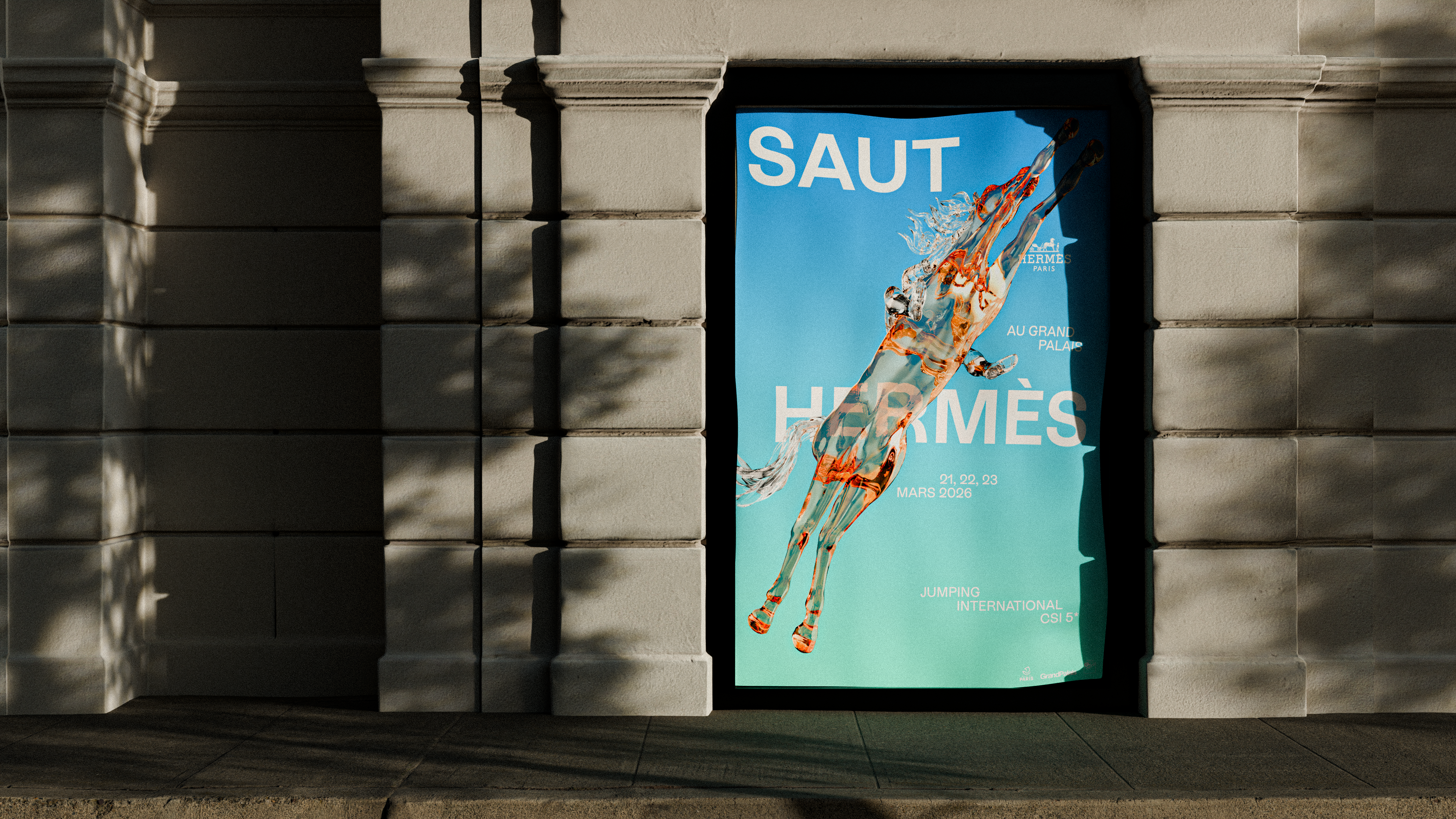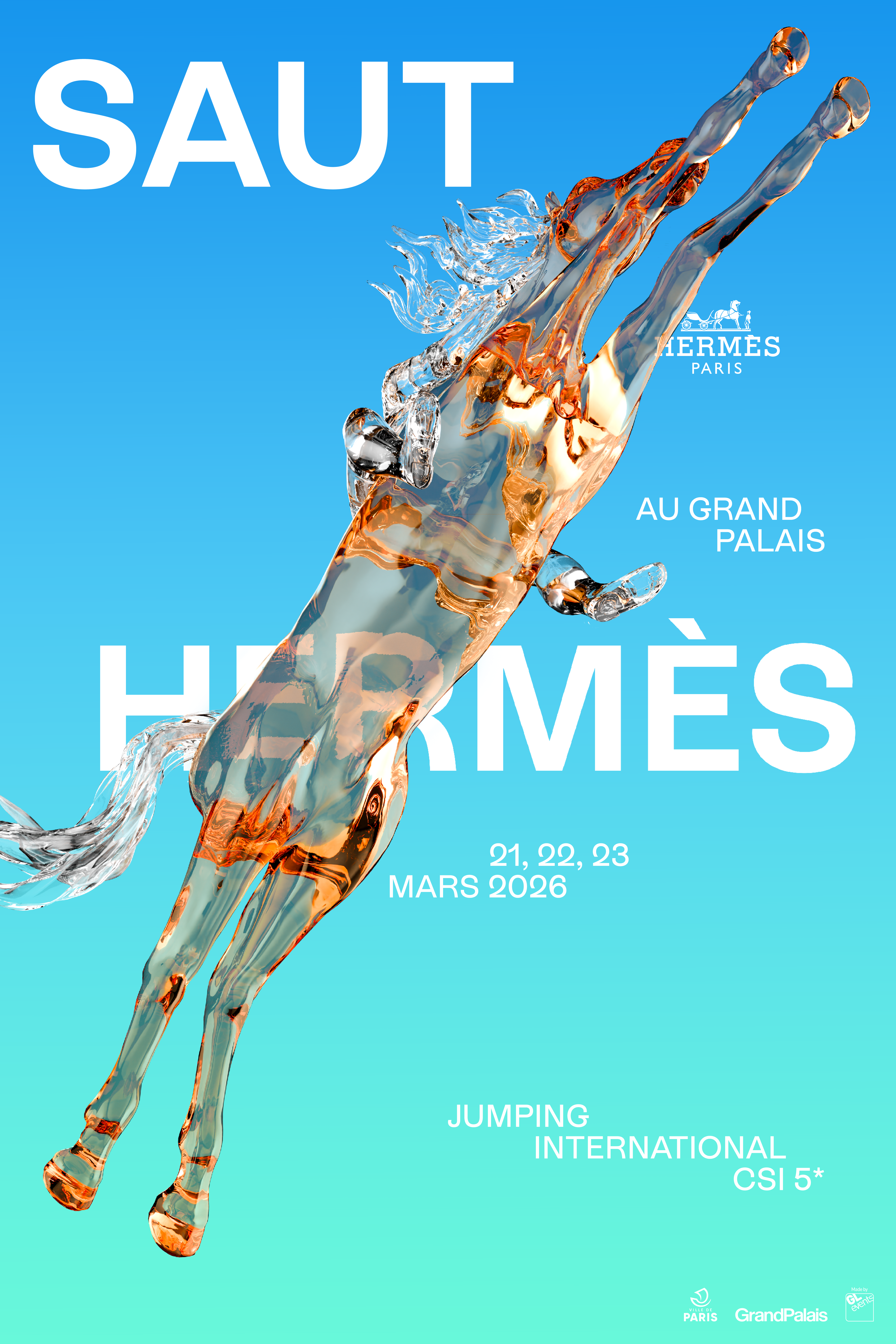 Ce projet est une proposition d’affiche pour le Saut Hermès 2026.