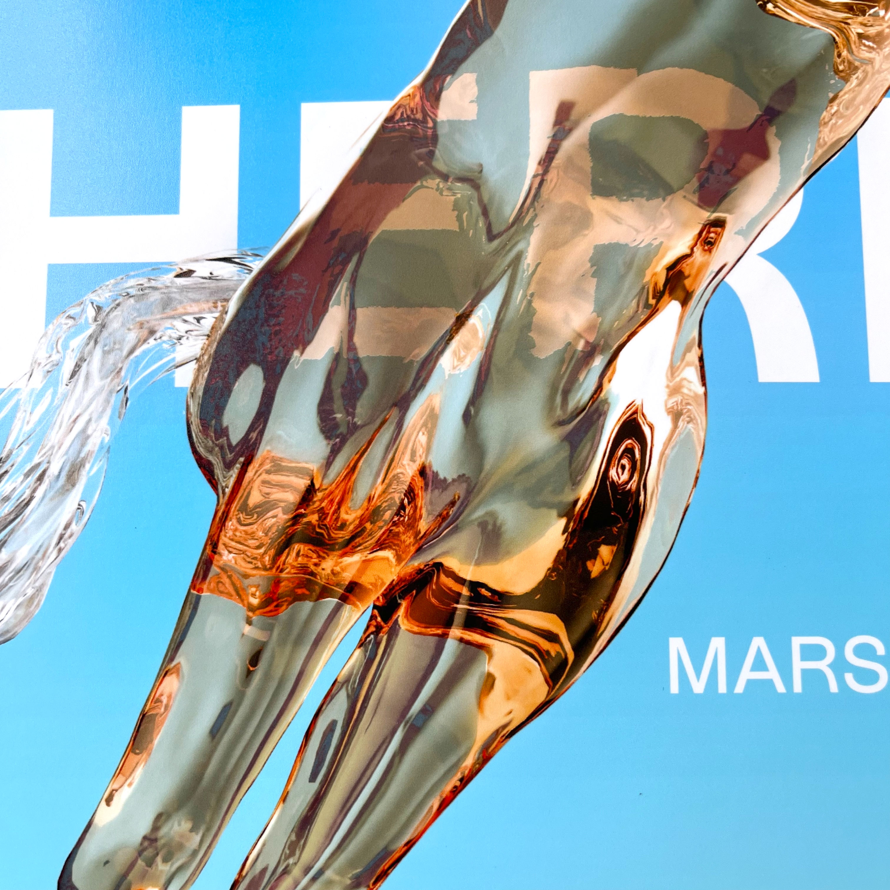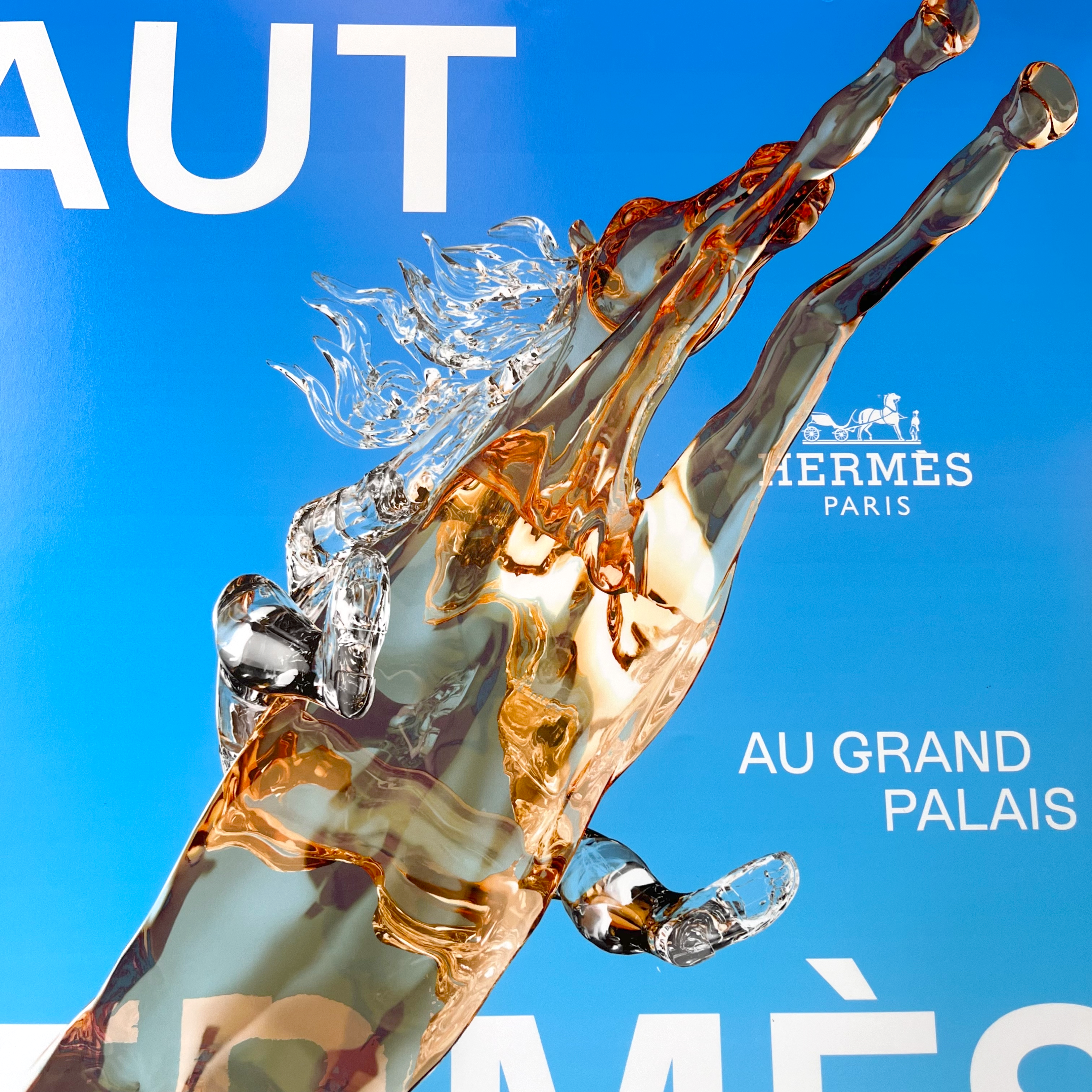 Un cheval en cristal s’élance tel un pégase dans l’azur, libre de toute entrave. Le cavalier et sa monture partagent une profonde confiance mutuelle. Le cheval, traversant l’affiche en diagonale, évoque dynamisme, vitesse et esprit sportif.